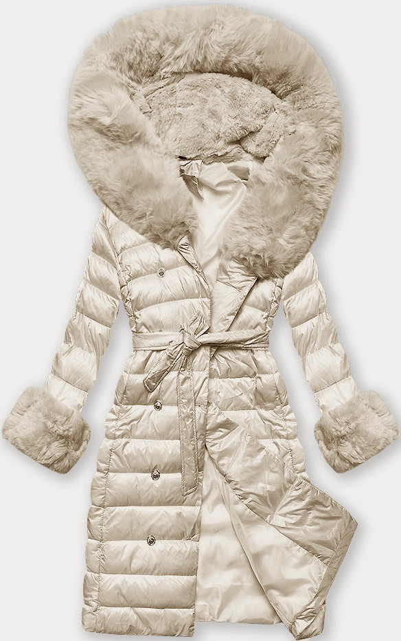 Světle hnědá krátká péřová bunda typu crop (d2-3831-305) odstíny hnědé L (40)