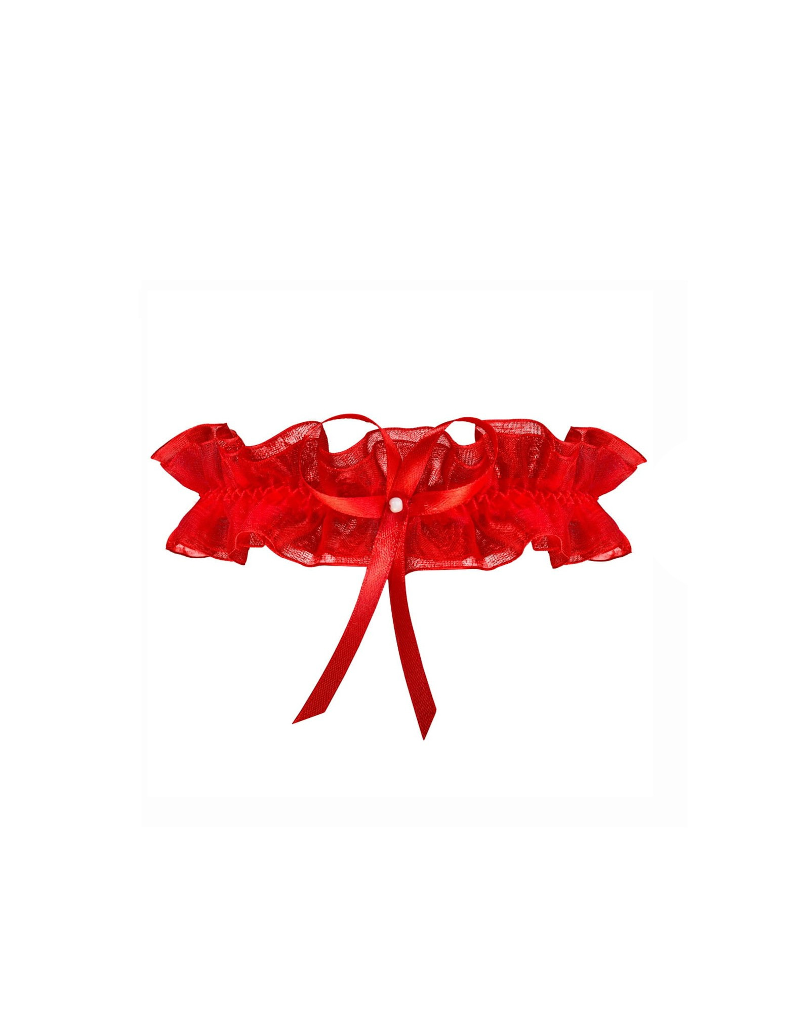Elegantní podvazek - ze šifonu - zdobený jemnou saténovou mašlí a korálky - silikon na vnitřní straně Složení: 100% polyester