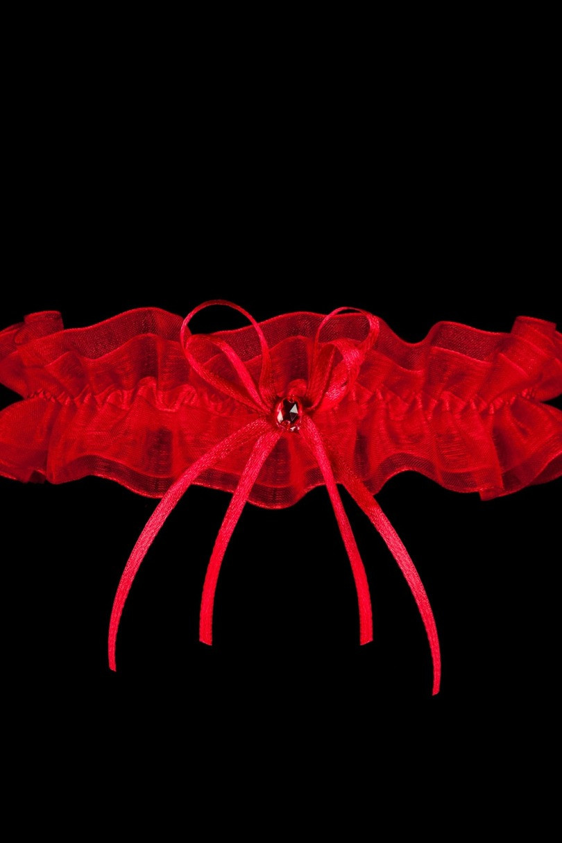 Podvazek v červené barvě, pečlivě vyrobený ze dvou vrstev jemného tylu. Díky speciálnímu silikonovému pásku umístěnému pod ním se při tanci nesklouzne. Složení 100% polyester.