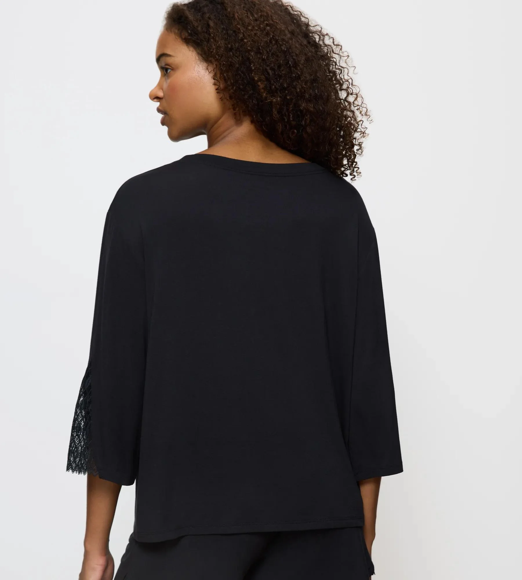 Vychutnejte si celoroční eleganci tohohle modelu na období mezi sezónami. Tenhle základní kousek nočního prádla, navržený z neobyčejně jemné tkaniny, je ideální na teplejší a chladnější noci. Pyžamový top s tříčtvrtečními rukávy Jemné krajkové vložky, které přidávají na eleganci Kulatý výstřih, který se hodí k jakémukoli tvaru těla Pohodlná pružná tkanina Snadno udržovatelná tkanina, kterou nemusíte žehlit. OEKO-TEX® STANDARD 100, 93.0.3130 Hohenstein HTTI Materiálové složení: 94% Modalová viskózová vlákna, 6% Elastan