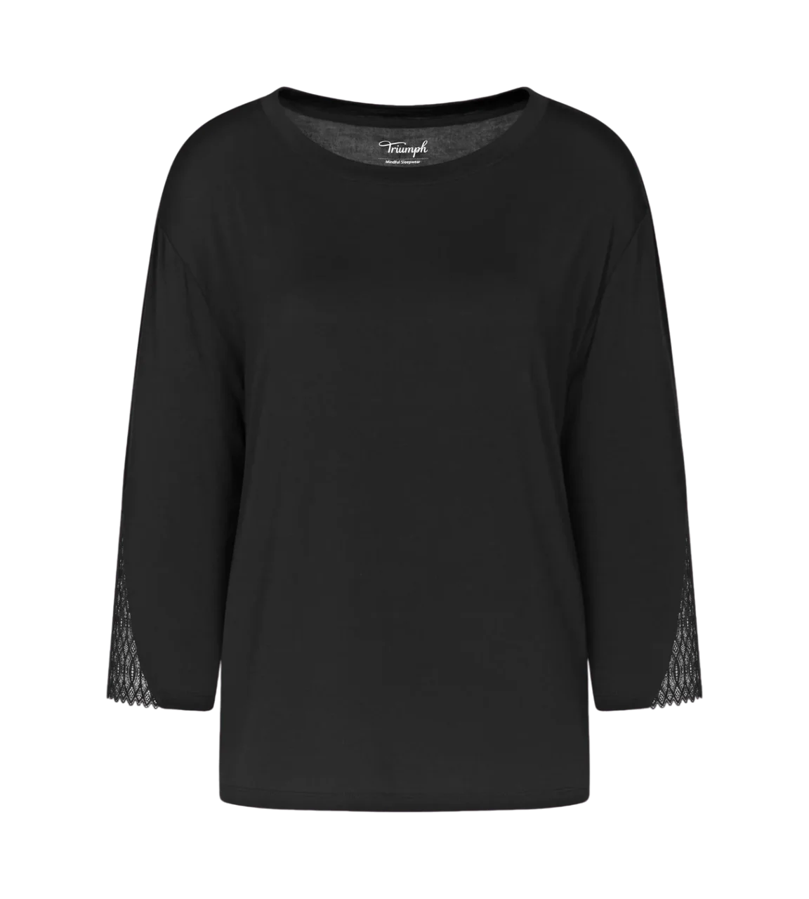 Vychutnejte si celoroční eleganci tohohle modelu na období mezi sezónami. Tenhle základní kousek nočního prádla, navržený z neobyčejně jemné tkaniny, je ideální na teplejší a chladnější noci. Pyžamový top s tříčtvrtečními rukávy Jemné krajkové vložky, které přidávají na eleganci Kulatý výstřih, který se hodí k jakémukoli tvaru těla Pohodlná pružná tkanina Snadno udržovatelná tkanina, kterou nemusíte žehlit. OEKO-TEX® STANDARD 100, 93.0.3130 Hohenstein HTTI Materiálové složení: 94% Modalová viskózová vlákna, 6% Elastan