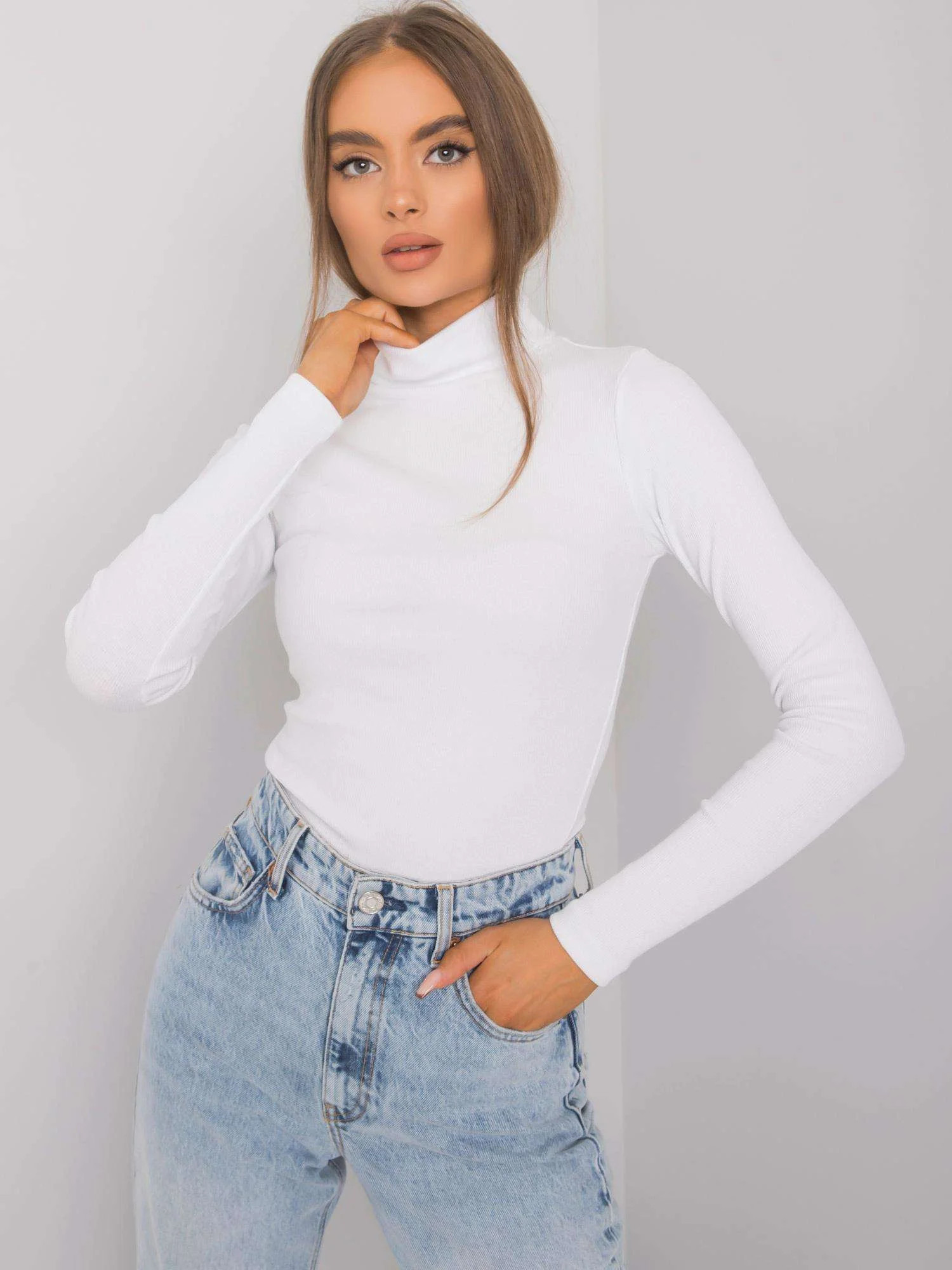 RUE PARIS Bílý žebrovaný rolák pro ženy. Materiálové složení: 90 % bavlna, 10 % elastan Velikost alt. Výška Obvod hrudníku Vnější délka rukávů Vnější délka rukávu S/M 36/38 160-172 82-86 59-61 49-51 L/XL 40/42 164-178 91-96 63-65 53-55