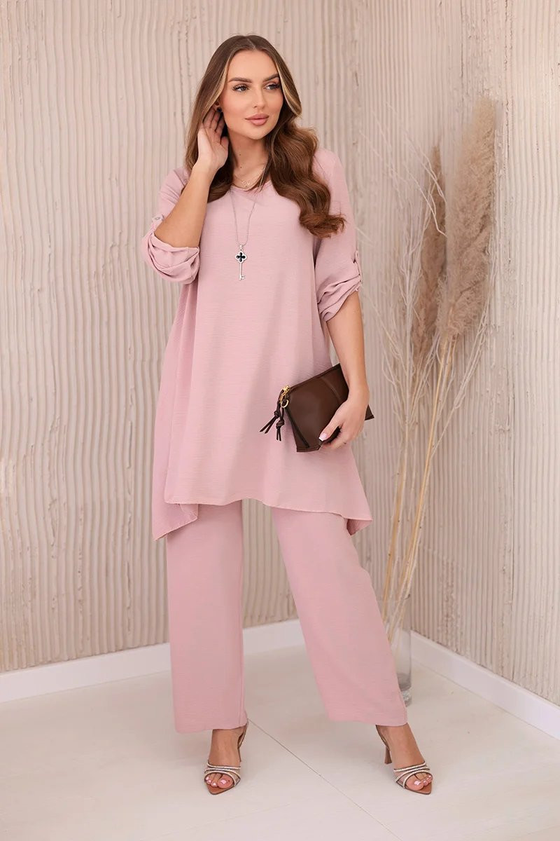 Domů Oblečení a móda Dámské oblečení Dámské halenky a košile Dámský set halenka + kalhoty s přívěskem 27941 Pudr růžová - Kesi UNI pudrovo-růžová