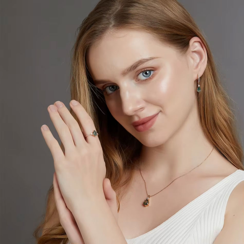 Stříbrná souprava s mechovým achátem je ztělesněním elegance s nádechem přírody. Zelenavý kámen s jemnými inkluzemi připomínajícími mech ukrývá v sobě klid i tajemství, které dokonale ladí s ženskou jemností. Kombinace pozlaceného stříbra, zirkonů a organické kresby achátu vytváří šperk, který přitahuje pozornost, a přesto působí přirozeně.Každý prvek tohoto setu – prsten, náhrdelník i náušnice – je navržen tak, aby vynikal samostatně, ale společně tvořil harmonický celek. Zirkony dodávají lesk a kontrast, zatímco zlacený povrch podtrhuje teplý tón mechového achátu. Celek působí luxusně a současně neokázale, což z něj činí skvělou volbu pro každodenní nošení i slavnostní příležitosti.Mechový achát se svým přírodním vzhledem osloví ženy, které milují detail, hloubku a propojení s přírodou. Díky unikátní kresbě není žádný kámen stejný, a každý kousek tak získává svůj osobitý charakter. Detailní parametry jednotlivých šperků naleznete po rozkliknutí konkrétního šperku na jeho produktové stránce. Zde se dozvíte přesné rozměry, materiálové složení a další specifikace, které vám pomohou s výběrem toho správného doplňku. 💡Tip: Každý šperk ze sady lze zakoupit jednotlivě nebo jako kompletní set, který vám umožní vytvořit harmonický a sladěný look. Perfektní volba pro ženy, které chtějí zvýraznit svůj jedinečný styl s dotekem elegance a přírodní krásy.