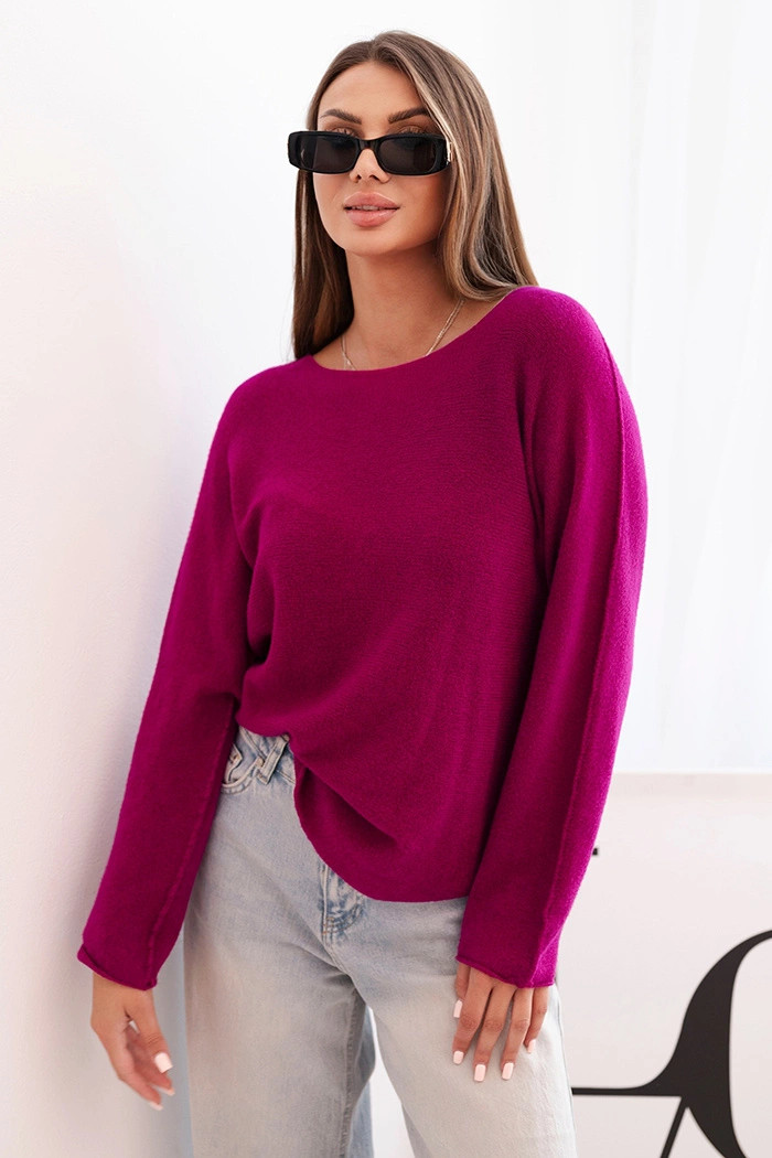 Dámský svetr z viskózy s dlouhým rukávem a kulatým výstřihem tmavě fialový UNI