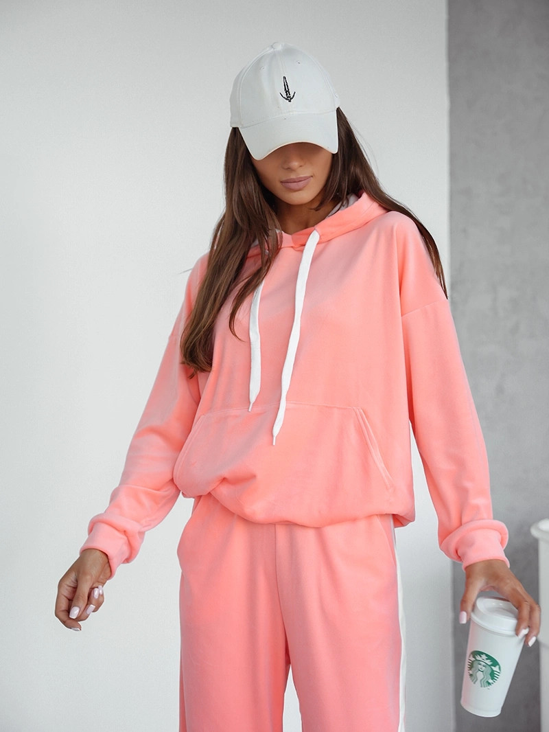 Věnujte prosím pozornost při výběru velikosti dle velikostní tabulky uvedené níže. Velikosti neodpovídají běžně nošené konfekci. Teplákový komplet, který se skládá z mikiny a teplákových kalhot. Volná mikina s kapucí Mikina se obléká přes hlavu, má jednu klokaní kapsu a je olemovaná stahovacími lemy. Teplákové kalhoty se stahovacími lemy Kalhoty mají vysoký sed a střih, jednoduché nohavice, dvě kapsy a v pase mají stahovací gumu. Komplet polským výrobkem. Složení: 95 % polyester, 5 % elastan.