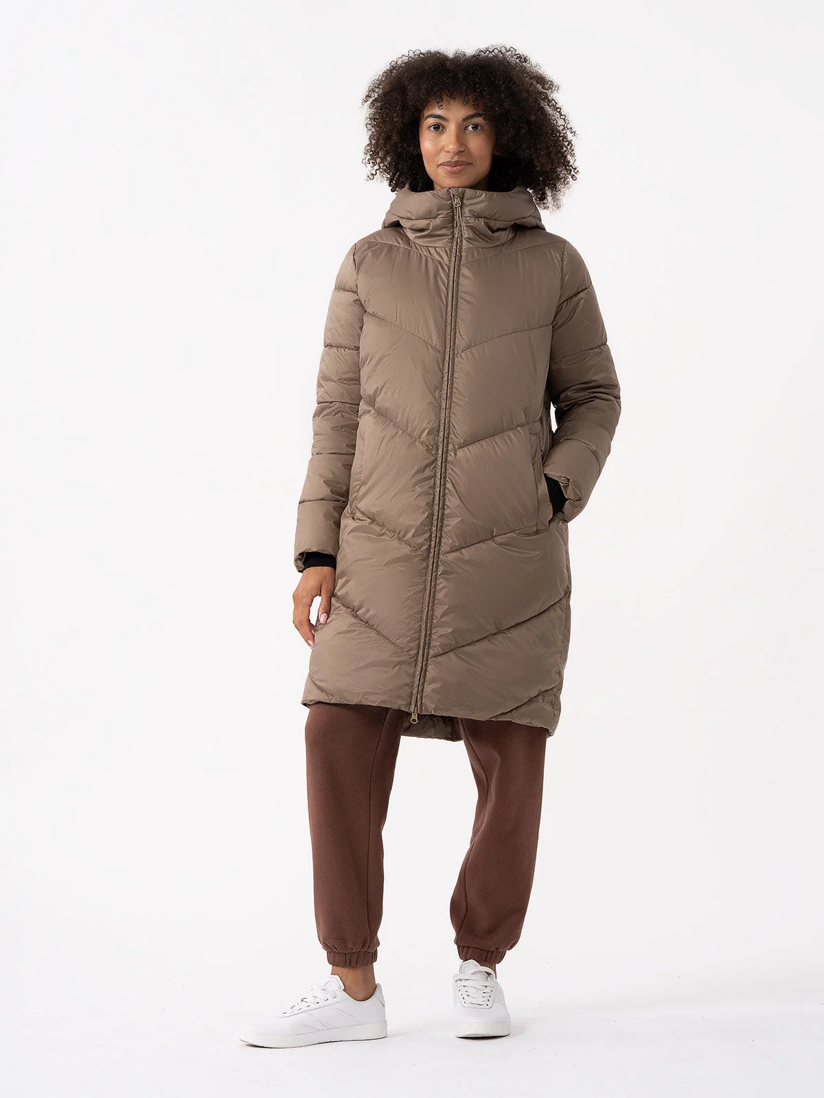 Dámský péřový kabát s výplní ze syntetického peří, díky čemuž zajišťuje optimální tepelný komfort v přechodném období. Kabát má dodatečný impregnační povlak, který chrání proti nadměrné absorpci vlhkosti zvenčí.hydrofobní impregnace materiálu omezuje absorpci vnější vlhkostihlavní zip zabezpečený vnitřní větruvzdornou klopou s ochranou bradyvnitřní, elastické manžety pro dodatečnou ochranu dlanímanžety a spodní část bez nastaveníneodnímatelná kapuce bez nastavení2 otevřené boční kapsy