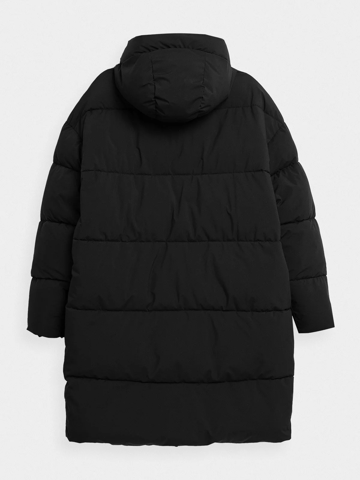 Dámský kabát 4F, díky syntetické péřové výplni a dlouhému střihu vám zajistí tepelný komfort v chladnějších dnech. Vnitřní pletené manžety a léga u dvoucestného zipu zabrání vniknout větru dovnitř kabátu. Použili jsme také hydrofobní impregnaci materiálu, která vám poskytne ochranu před nepříznivými povětrnostními podmínkami.hladký, prošívaný materiál s hydrofobní úpravou podporuje ochranu proti nadměrné absorpci vlhkostivysoký límec poskytuje dodatečnou ochranu a tepelný komfortvnitřní pletené manžety zabraňují pronikání chladu dovnitř kabátuvýplň ze syntetického peří zajišťuje tepelný komfort během chladnějších dnůintegrovaná kapuce s bočním nastavenímhlavní zip zabezpečený vnitřní a vnější větruvzdornou légouskryté přední kapsy pod légou