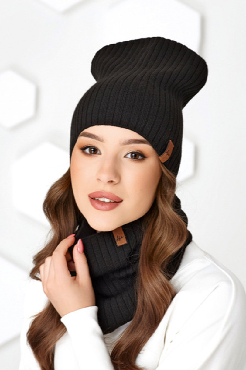 Dámský komplet, který tvoří čepice s přídavkem vlny a komínová šála (nákrčník). Komplet je vhodný pro chladné podzimní období, nebo pro ženy, které nerady v zimě nosí hrubé čepice. Složení: 90 % akryl, 10 % vlna.