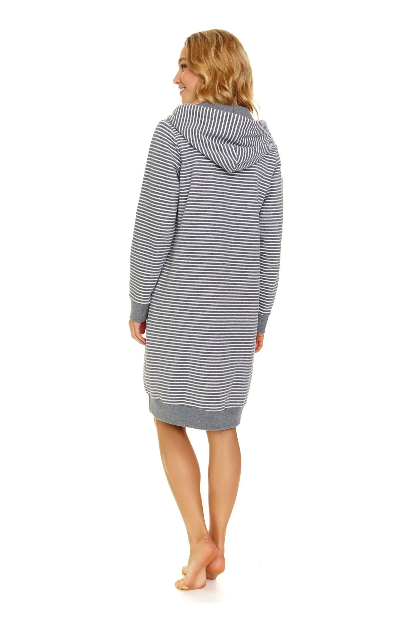 Dámský župan 5246 dark grey Doctornap - tmavě šedá barva - z vysoce jakostní bavlny - s pruhy - zapínání na zip - s kapucí - s kapsami - rukávy a spodní lem zakončené efektním lemem - délka nad kolena - certifikát OEKO-TEX Standard 100Materiálové složení: 80% bavlna + 20% polyester