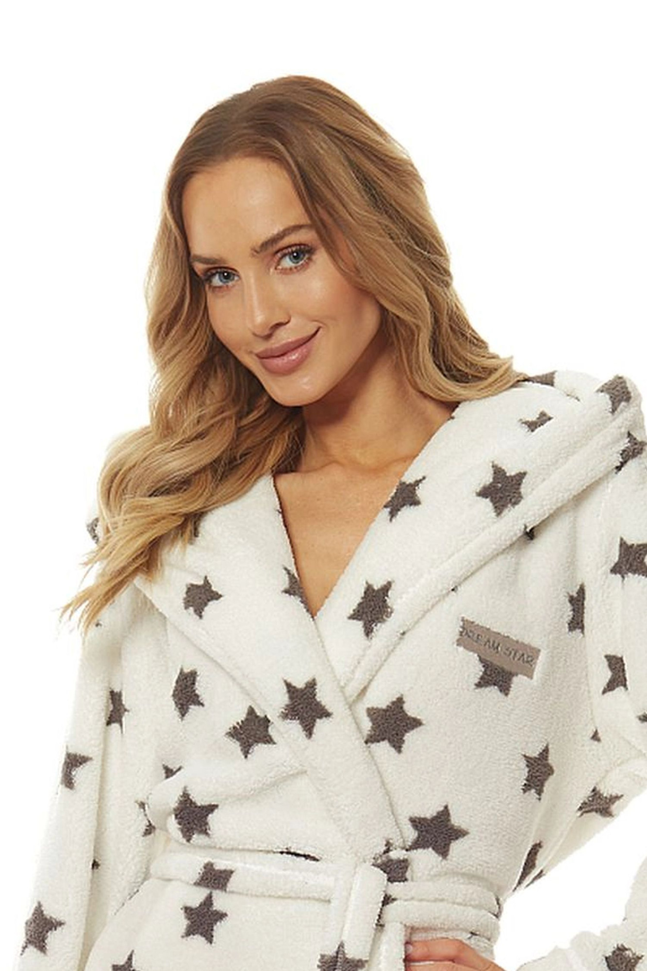 Dámský župan 9135 white L&L - bílá barva - ušitý z měkkého materiálu typu soft - s tmavě šedými hvězdičkami - má kapsy a v pase vázání - s kapucíMateriálové složení: 100% polyester Dámské velikosti S/M L/XL Výška (cm) 164 170 Obvod přes prsa (cm) 96 96 Obvod přes boky (cm) 104 108 Pánské velikosti L XL Výška (cm) 176 182 Obvod přes prsa (cm) 114-116 118-120 Obvod přes boky (cm) 112 116