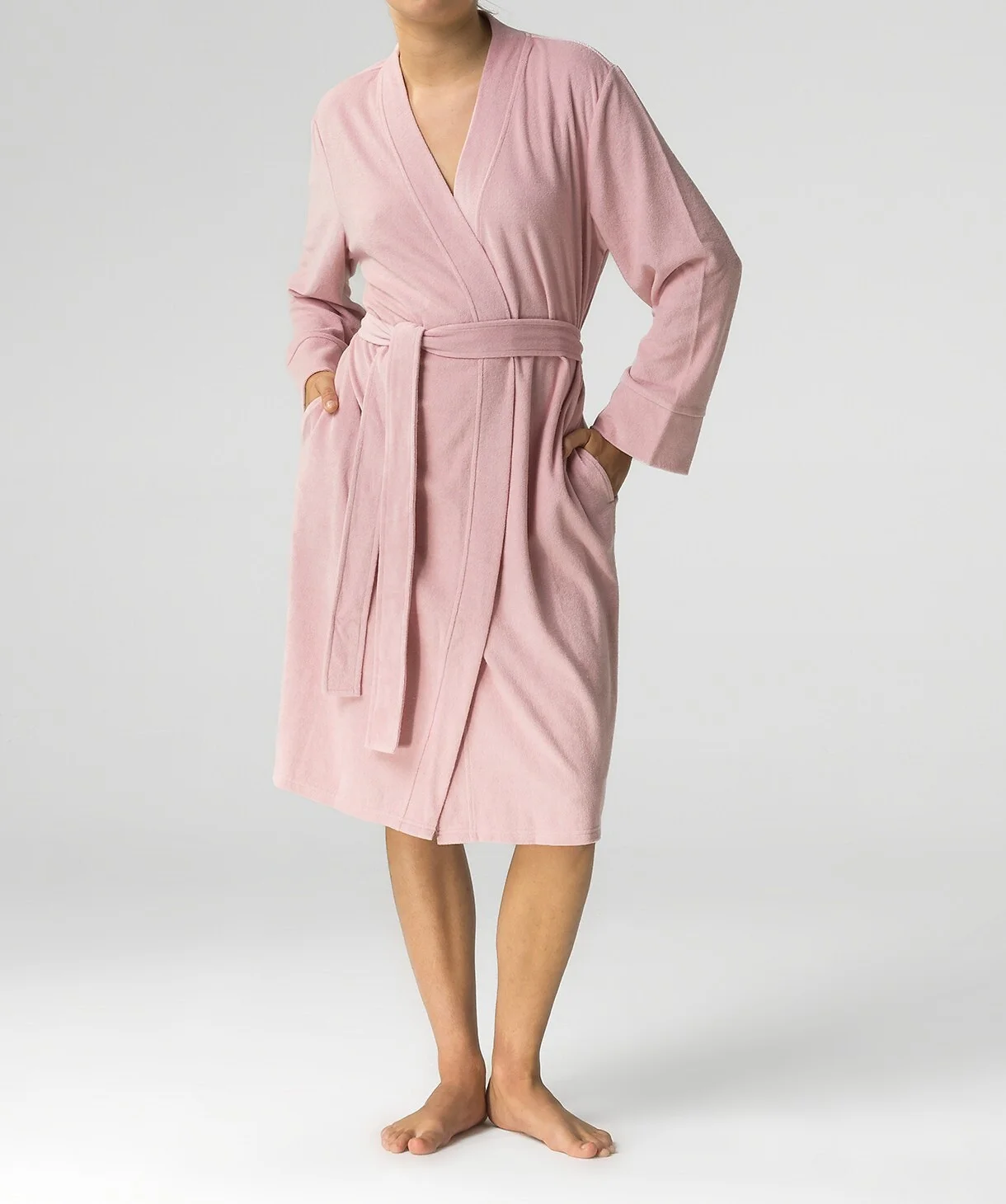 Dámský župan - z příjemného úpletu French Terry (měkký, tělový a příjemný na dotek úplet, dokonale přiléhá k tělu) - kimonový střih - dlouhé široké rukávy - pohodlné boční kapsy - zavazování v pase - délka ke kolenům   Složení: 80 % bavlna, 20 % polyester