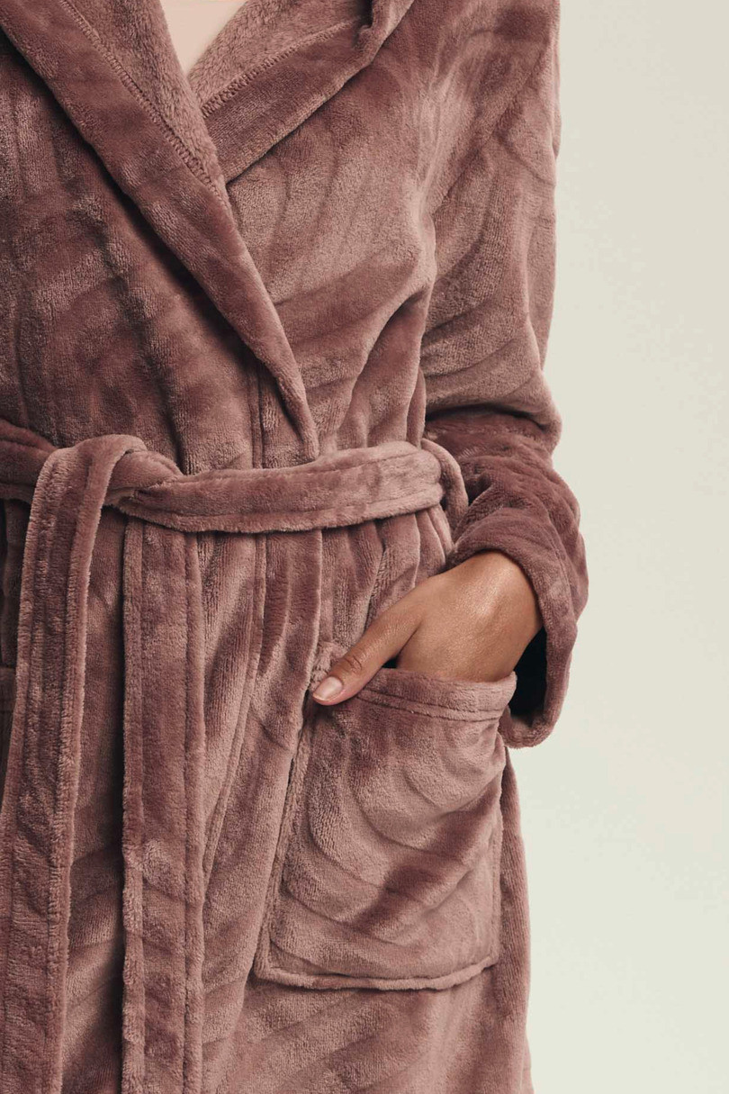Szlafrok damski DEVYN 43602 AW25 – miękkość w geometrycznym stylu Szlafrok damski DEVYN 43602 AW25 to doskonała propozycja dla kobiet ceniących wygodę, elegancję i nowoczesne wzornictwo. Wykonany z wyjątkowo miękkiego materiału o geometrycznym tłoczeniu, zapewnia przyjemne ciepło i stylowy wygląd. Wyposażony w duży kaptur, pojemne kieszenie i pasek do przewiązania w talii, łączy w sobie funkcjonalność z subtelną kobiecością. Dostępny w modnych, pudrowych odcieniach, będzie idealnym towarzyszem poranków, wieczorów i chwil relaksu w domowym zaciszu. Skład surowcowy: 100% Poliester