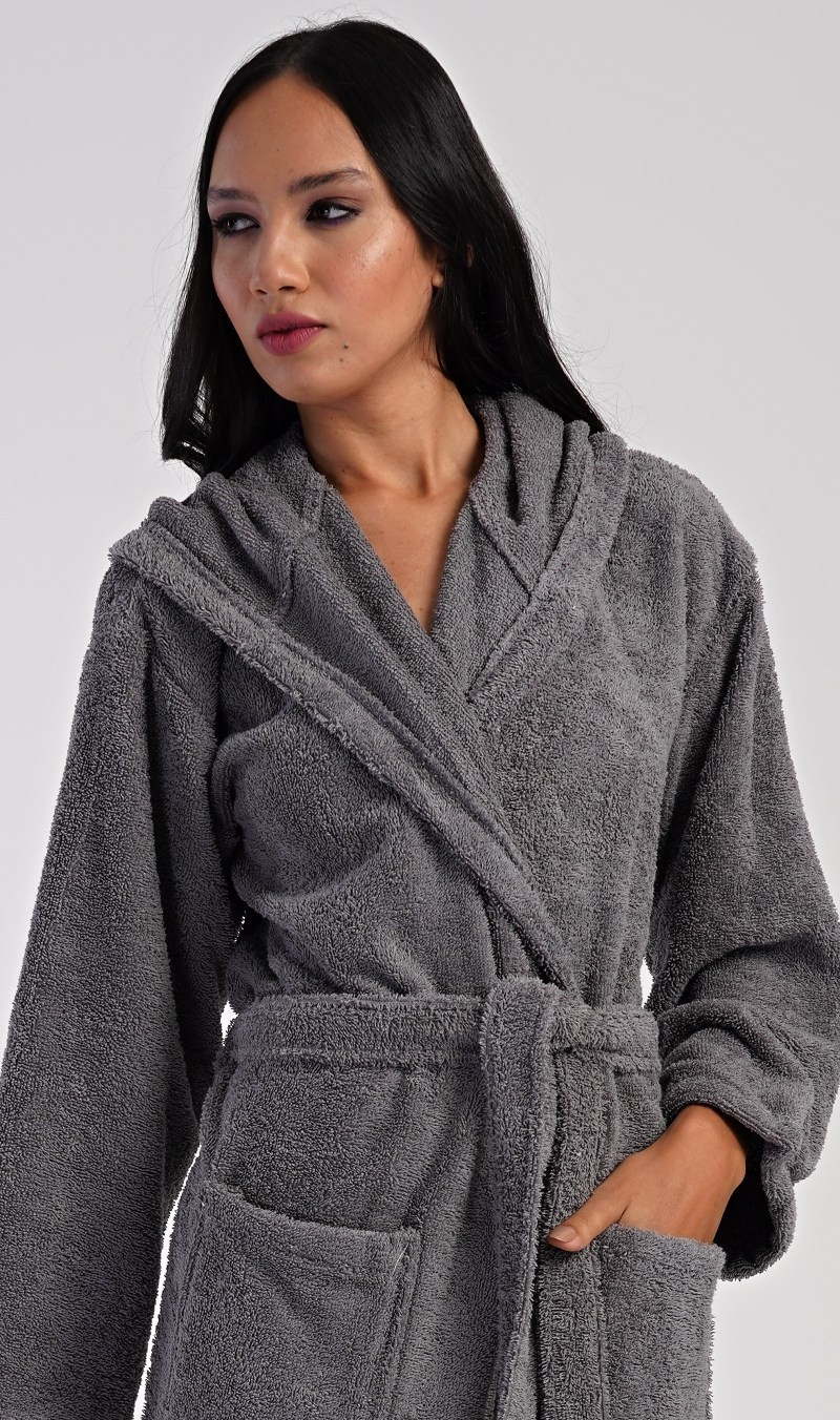 Dámský bavlněný froté župan s kapucí Barbora. Dámský dlouhý župan s kapucí a páskem ke stažení je vhodný po koupeli i na povalování se doma na gauči. Froté župan má praktické kapsy, které oceníte při návštěvě wellness. Použitý bavlněný materiál je příjemný a poddajný na dotek. 1617140000 Barbora L XL obvod 120 124 délka županu 120 120 délka rukávu (od ramene) 56 58