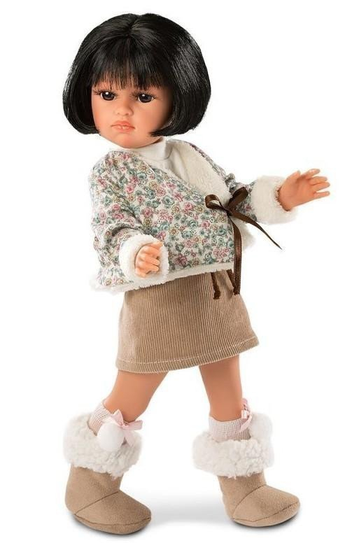 Panenka s polohovací hlavou bez zvuku s vinylovým tělem a s vlásky po celé hlavě, podobající se malé slečně. Hlava je polohovací pomocí kloubu. Velikost 37 cm.