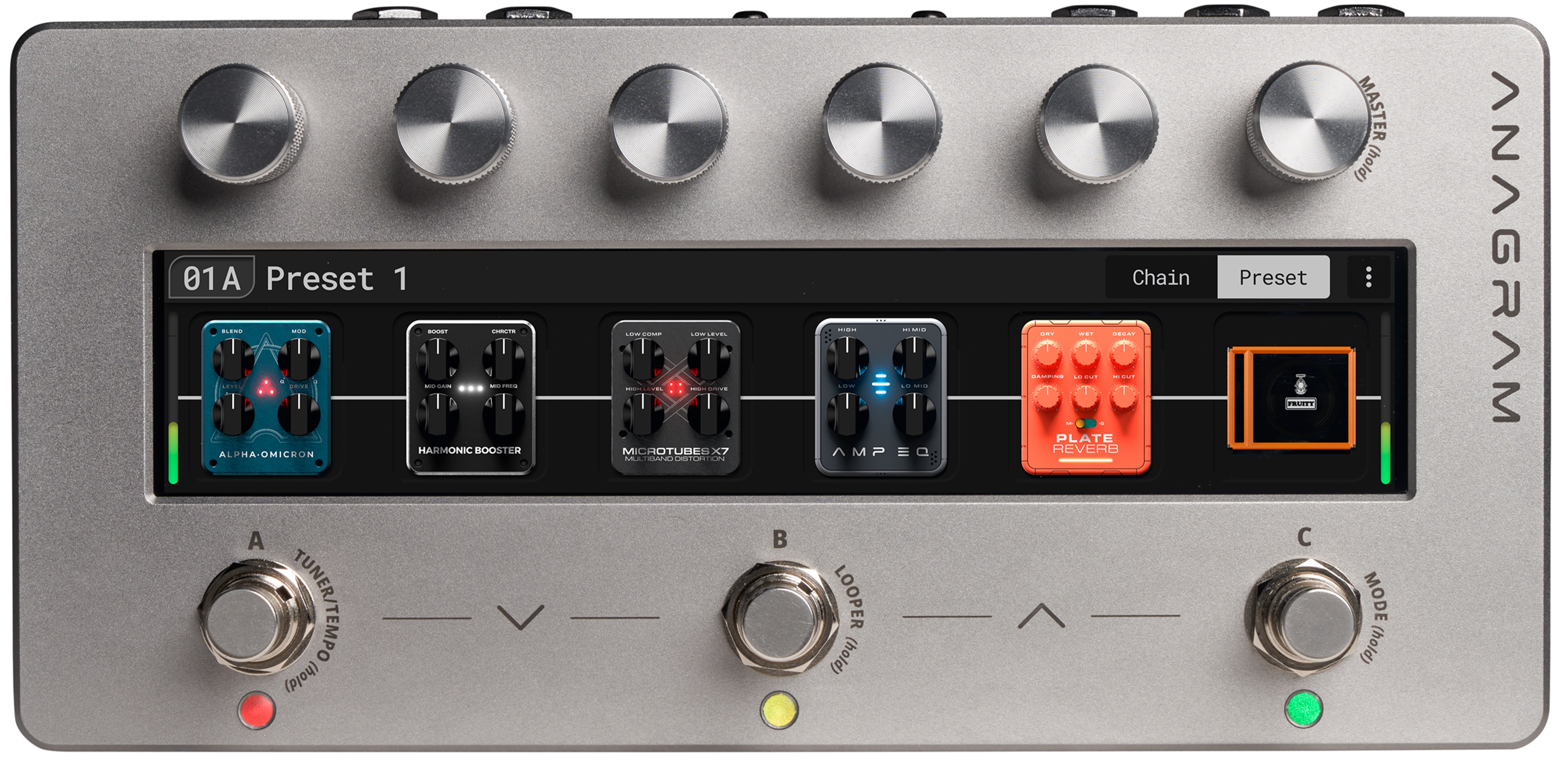 Baskytarový multiefekt Darkglass Anagram je revoluční multiefektový procesor, který posouvá hranice zvuku baskytary na zcela novou úroveň. Kombinuje ultra nízkou latenci, hluboké možnosti úprav signálu a bezproblémovou integraci do ekosystému Darkglass, což umožňuje baskytaristům dosáhnout studiové preciznosti i obrovského výkonu na pódiu. Díky kompaktním rozměrům se snadno vejde na jakýkoliv pedalboard a poskytuje neomezený zvukový potenciál. Srdcem Anagramu je Neural Amp Modeler (NAM), pokročilá technolog