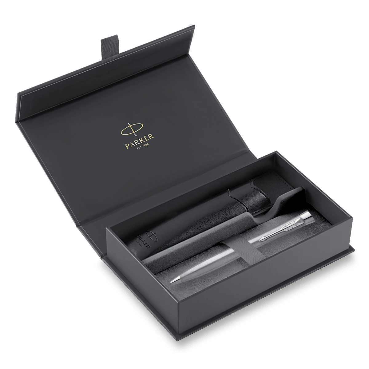 Dárková kazeta Parker Urban Metro Metallic CT - sada kuličkové pero a pouzdro Popis produktu: Objevte dokonalou kombinaci elegance a funkčnosti s dárkovou kazetou Parker Urban Metro Metallic CT. Tato sada je ideálním dárkem pro ty, kteří ocení kvalitu a styl. Kuličkové pero Parker Urban Metro Metallic CT: Materiál a design: Pero je vyrobeno z broušené mosazi s pochromovanou povrchovou úpravou, což mu dodává moderní a sofistikovaný vzhled. Kovový úchop zajišťuje pohodlné a jisté držení. Doplňky: Pero je doplněno prvky pokovenými chromem, které podtrhují jeho luxusní vzhled. Funkčnost: Kuličkové pero je navrženo pro hladké a plynulé psaní, ideální pro každodenní používání i speciální příležitosti. Černé PU pouzdro Parker: Materiál: Pouzdro je vyrobeno z kvalitního PU materiálu, který je odolný a zároveň elegantní. Design: Jednoduchý a stylový design pouzdra zaručuje, že pero bude vždy bezpečně uloženo a připraveno k použití. Voucher Akademie psaní: Obsah: Součástí kazety je i voucher na kurz v Akademii psaní, který nabízí možnost zdokonalit své psací schopnosti a objevit nové techniky. Vhodné: jako dárek: Perfektní volba pro obchodní partnery, kolegy, přátele či rodinné příslušníky, kteří si zakládají na kvalitních psacích potřebách. pro osobní použití: Ideální pro každého, kdo si chce dopřát trochu luxusu v každodenním životě. Výhody: Styl a kvalita: Spojení moderního designu s tradiční kvalitou značky Parker. Praktické a elegantní: Sada je nejen praktická, ale také esteticky přitažlivá, což z ní činí skvělý doplněk k jakémukoli stylu. Dárková kazeta Parker Urban Metro Metallic CT je více než jen psací potřeba – je to projev osobního stylu a vkusu. Zakupte produkt Dárková kazeta Parker Urban Metro Metallic CT - sada kuličkové pero a pouzdro z kategorie Psací potřeby | Značkové psací potřeby | Parker | Dárkové sady Parker od výrobce Parker za cenu 869 Kč.