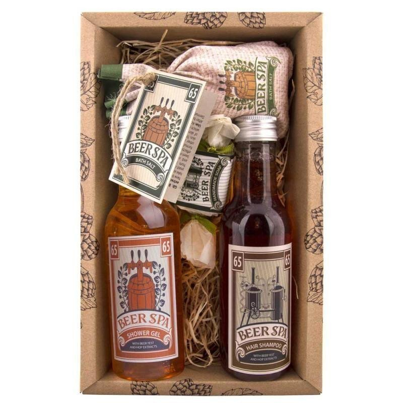 Dárkové balení pivní kosmetiky Beer Spa – sprchový gel 200 ml, koupelová pěna 200 ml, mýdlo 30 g a koupelová sůl 150 g. Originální dárek nejen pro muže. Relaxujte a vytvořte si domácí pivní lázně.