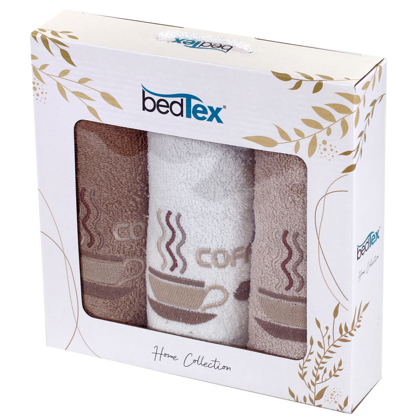 Dárková sada froté ručníčků 3 ks Ranní káva Dárková sada kuchyňských froté ručníčků, je vyrobena ze 100% bavlnyRučníky jsou ve třech barvách a to bílé, béžové a hnědé, s vyšitými kávovými hrníčky, ze kterých se doslova "line vůně ranní kávy"Ručník je vyroben ze smyčkového froté s gramáží 400 g/m²Každý ručníček s kávovými hrníčky má rozměry 30x50 cmRučníčky najdou své využití hlavně v kuchyni, kde budou díky svému dekoru krásně laditV naší nabídce najdete nejen ručníčky, ale také vaflové utěrkyDárková sada Ranní káva, je vyrobena v TureckuPokud budete chtít potěšit své nejbližší, nebo přátele, věřte, že právě tato sada pro ně bude krásným dárkemVYNIKAJÍCÍ POMĚR KVALITY, DESIGNU A CENY Ručníky perte podle symbolů uvedených na obaleNepoužívejte prací prostředky s obsahem bělících a rozjasňujících substancí Odstíny barev obrázků s mohou barevně lišit, v závislosti na nastavení vašeho monitoru