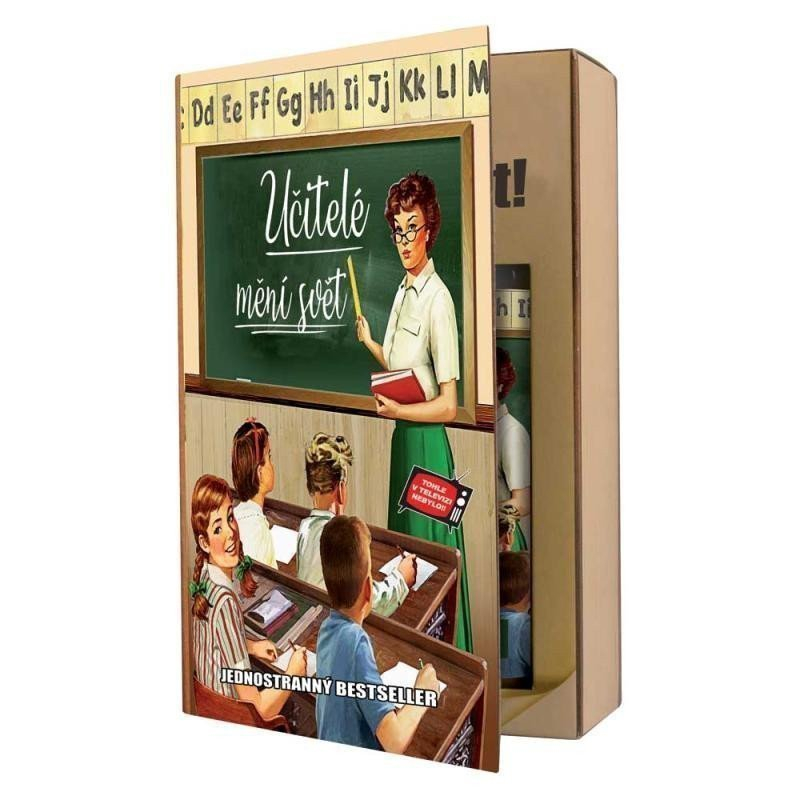 Dárkové balení kosmetiky pro učitele – učitel mění svět. Kosmetický balíček v netradičním balení – kniha – obsahuje sprchový gel a vlasový šampon. Po odklopení přední strany krabičky si můžete přečíst několik krátkých učitelských vtipů. Krásný dárek pro učitele jako poděkování za jejich důležitou práci.