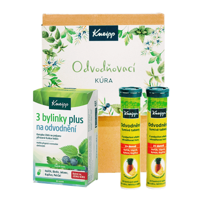 Balení obsahuje bylinné tobolky s práškem z petržele, jalovce a kopřivy a šumivé tablety pro přípravu osvěžujícího nápoje s příchutí ananasu.