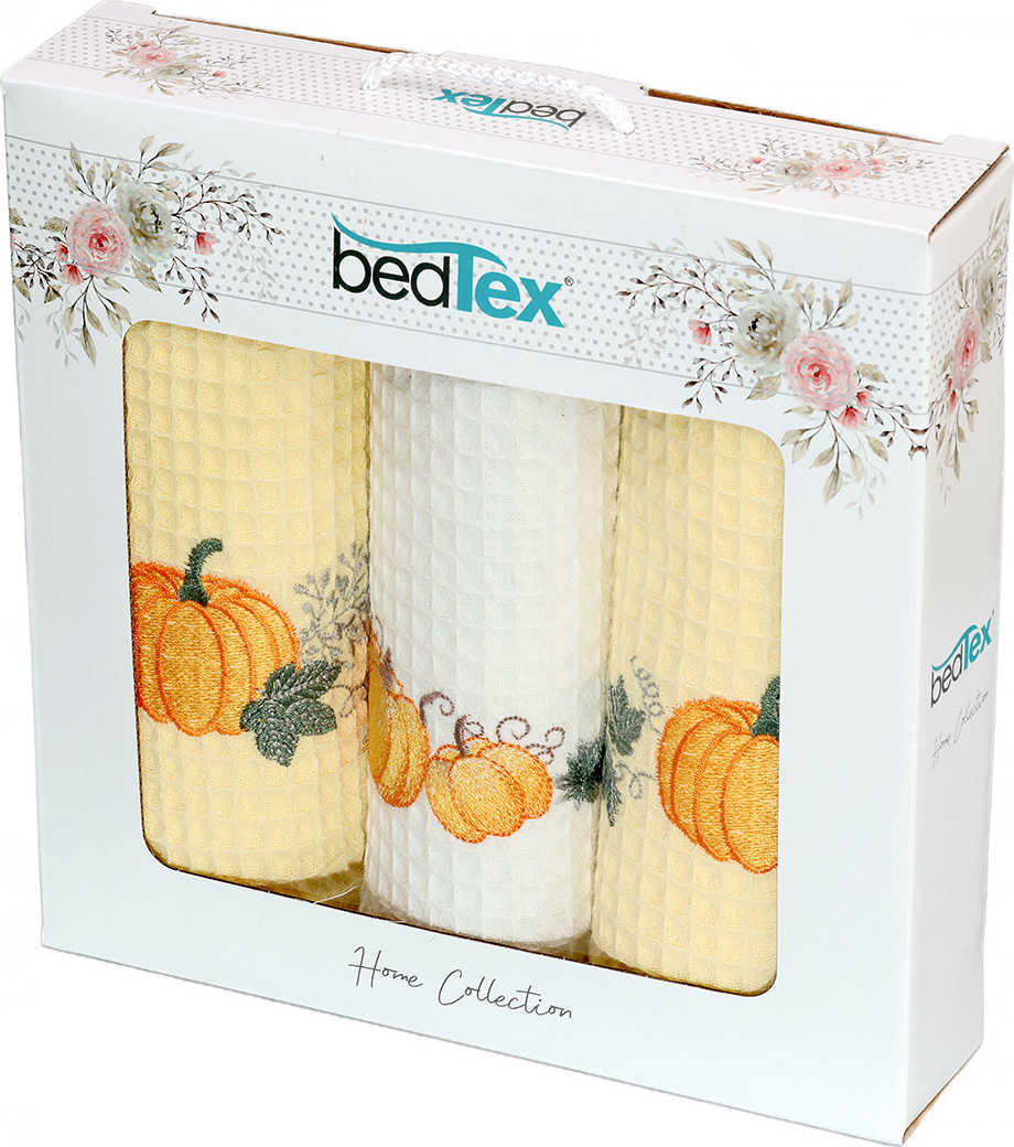 Dárková sada 3 ks vaflových utěrek s vyšitou dýní Dárková sada vaflových utěrek, je vyrobena ze 100% bavlnyVaflový vzor je textilie s plastickým povrchem, kdy hustě provázaná místa tvoří ve tkanině prohloubeninyTento výrobek je vysoce savýUtěrky jsou v balení ve dvou barvách, a to 2x světle žluté a 1x bíléNa každé z nich je výšivka oranžových dýni s lístečkyRozměr utěrky v sadě je je 40x60 cmV naší nabídce kromě sad vaflových utěrek najdete také sady s kuchyňskými ručníčkyDárková sada utěrek Dýně je vyrobena v TureckuUtěrky perte podle symbolů uvedených na obaleNepoužívejte prací prostředky s obsahem bělících a rozjasňujících substancí Odstíny barev obrázků se mohou lehce barevně lišit, v závislosti na nastavení Vašeho monitoruVYNIKAJÍCÍ POMĚR KVALITY, DESIGNU A CENY