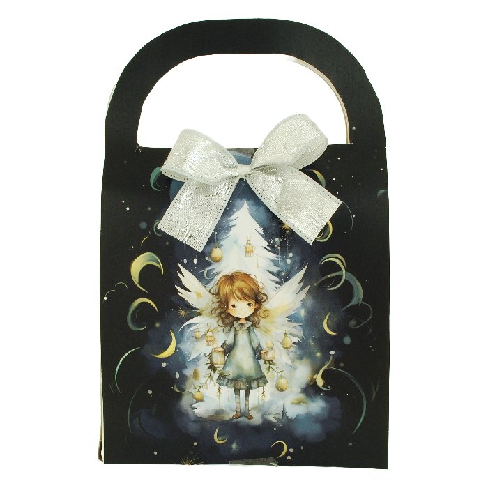 Dárková taška s motivem krásného Vánočního anděla. V balení najdete 2 druhy sypané čaje Obsah: sypaný ovocný čaj aromatizovaný 50g Složení: ibišek, jablko, pomerančová kůra, šípky, aroma sypaný zelený čaj aromatizovaný 50g Složení: zelený čaj China Sencha, květy růže, pomerančová kůra, hřebíček, kardamon, aroma 2x50g