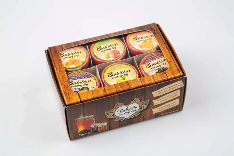 Babiččin ovocný čaj Dárková krabička pečených čajů Klasické dárkové balení jednoporcovek 6 × 55 ml – složení náhodný mix. Varianta teplá - v zimním období stačí obsah skleničky s ovocem jednoduše přelít horkou vodou a vychutnáte si prvotřídní ovocný čaj s opravdu velkými kousky ovoce, který v zimě báječně zahřeje. Varianta na studeno - v letním období stačí obsah skleničky s ovocem zalít dobře vychlazenou vodou či minerálkou, přidat led a získáte tím velmi osvěžující a originální nápoj pro letní dny se skvělou chutí!