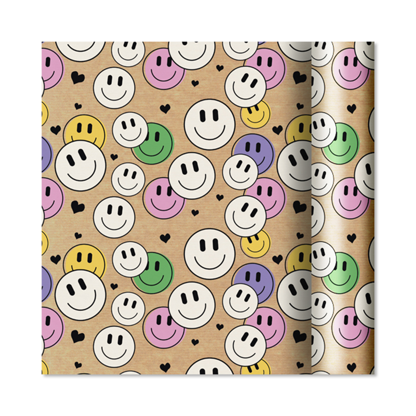 Dárkový papír Kraft - role 2 m × 70 cm - Barevní smajlíci - Albi