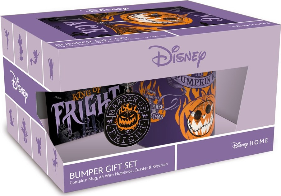 <p>Limitovaný dárkový set s licenčním motivem animovaného muzikálu Nightmare Before Christmas. Set obsahuje hrneček, podtácek, A5 linkovaný zápisník a klíčenku.</p>