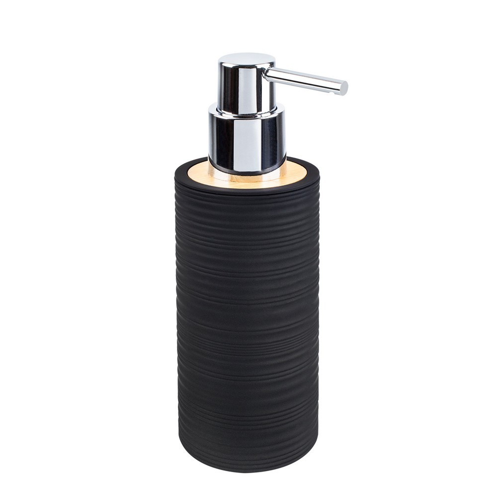 Dávkovač tekutého mýdla o objemu 300 ml, černý s ozdobným prvkem z přírodního bambusu. Vysoký dávkovač mýdla je ideální pro mísová umyvadla. Je vyrobena z vysoce kvalitního ABS plastu, odolná proti vlhkosti a snadno se čistí.