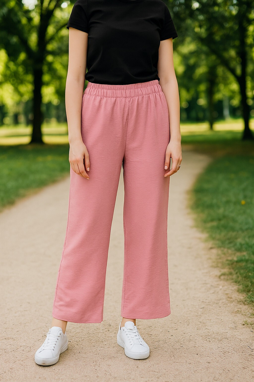 Dámské dlouhé kalhoty - měkká, homogenní tkanina - rovný, ležérní střih - elastický pás s látkou - pohodlné kapsy na bocích - baleno v plastovém sáčku Složení: 100% polyester