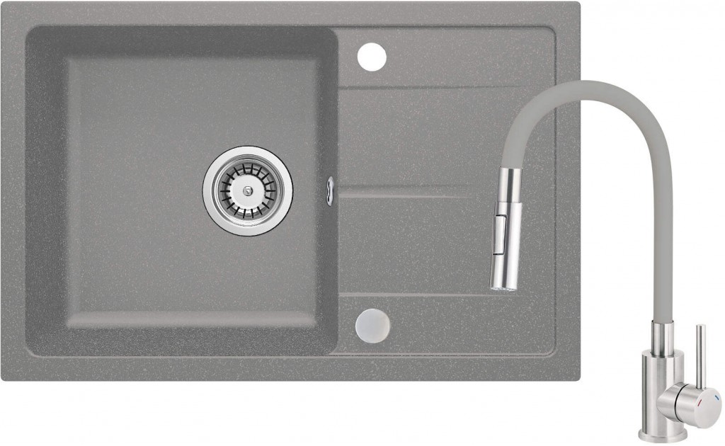 Žulový dřez s baterií tvoří kompletní kuchyňský set. Vyroben z odolné přírodní žuly, je odolný nejen vůči vysokým teplotám a výkyvům, ale také vůči nárazům a změně barvy, v souladu s evropskou normou PN-EN 13310. Je také obohacen o hydrofobní povlak, který usnadňuje odtok jednotlivých kapek. Zakřivený výtok baterie si zachovává svůj tvar, což umožňuje jeho nastavení v libovolném směru, což usnadňuje oplachování velkých a objemných předmětů, jako jsou plechy v troubě nebo police v lednici. Vlastnosti žuly Deante: odolnost proti nárazu, vysoké teplotě, zabarvení, tepelnému šoku Žula obohacená o ionty stříbra dodává antiseptické vlastnosti Hydrofobní vlastnosti odpuzují molekuly vody Oboustranný dřez - instalace s mísou vlevo nebo vpravo Prostorově úsporný sifon, který mimo jiné usnadňuje třídění odpadu. Nejdelší 18letá záruka Dřez vybavený připojovacími armaturami pro myčku nádobí Možnost zakoupení háčku na houbičku, který k tomuto modelu perfektně pasuje. Možnost zakoupení držáku na hadřík, který k tomuto modelu perfektně pasuje Vodovodní baterie je vybavena perlátorem, který provzdušňuje proud. Dvoufunkční sluchátko Nabízíme přípravek na čištění armatur ve všech barevných provedeních.