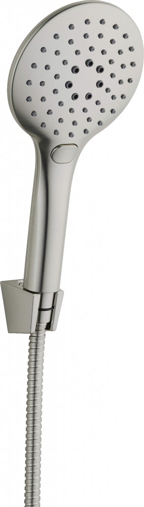 Sprchový set Lupo byl navržen v nadčasovém stylu, aby se hodil do každé koupelny. Skládá se ze sluchátka, držáku hrotu a hadice a je dokončena z broušené nerezové oceli. 3-funkční sluchátko Nabídka zahrnuje speciální bezpečný prostředek na čištěné povrchy