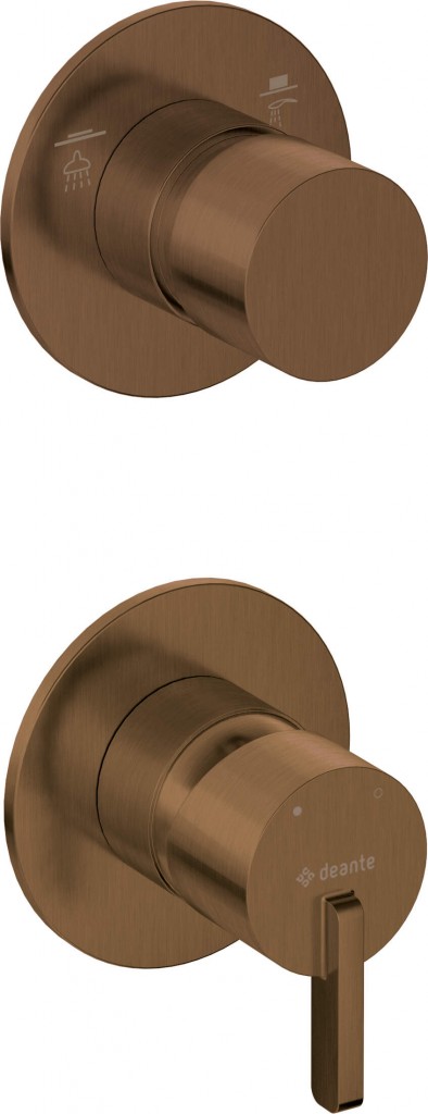 Sprchová baterie je velmi důležitým prvkem armatury, se kterým je nutné počítat při zařizování koupelny. Náš model se bude hodit do minimalistických, moderních i tradičnějších interiérů. Garantujeme také nejvyšší parametry materiálů a povrchových úprav díky trojité kontrole kvality Deante. Vestavěný mixér zajistí optimální teplotu vody. Vhodné pro zapuštěné instalace. Elegantní provedení ozdobí každou koupelnu. Baterie má sprchový spínač. Povlak nanášený metodou PVD Inovativní a snadno udržovatelný nátěr - broušený bronz Ušlechtilá forma a nadčasová jednoduchost Keramický přepínač funkcí mechanického kliknutí Skrytá instalace zajišťuje estetiku koupelny Pouze ty nejlepší materiály, jejichž kvalitu potvrzují laboratorní testy Přípravek na čištění armatur nabízíme ve všech barvách.