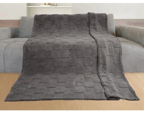 Luxusní deka 140x200 cm v antracitové barvě vás okouzlí neodolatelnou hebkostí, hřejivostí a žakárovým káro vzorem.