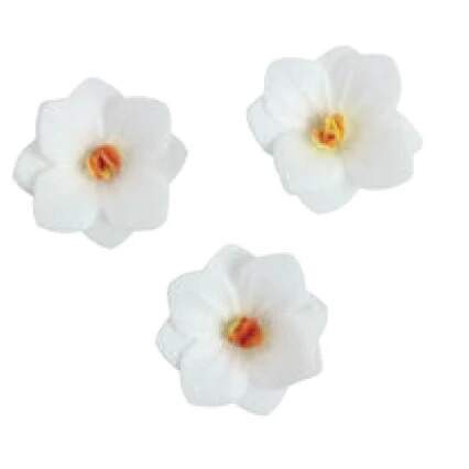 Balení obsahuje 3 ks. Velikost květiny je cca 38 mm. Tzv. jedlý papír. Vhodné na zdobení dortů, rolád, dezertů apod. Složení: bramborový škrob, aroma, koncentrát světlice barvířské, ředkvičkovo-rybízovo-jablečný koncentrát , barvivo E172. Výživové hodnoty (ve 100g výrobku): Energetická hodnota: 1560 kJ/ 367 kcal; tuky 1 g (z toho nasycené mastné kyseliny 0,1 g); sacharidy 89,04 g (z toho cukry 0,5 g); bílkoviny 0,56 g; sůl 0,07 g.