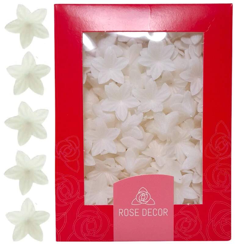 Oplatková dekorace, která je vhodná na zdobení dortů, rolád, dezertů, cupcakes apod. Tzv. jedlý papír. Rozměr květu je 2 cm. Složení: škrob. Výživové hodnoty na 100g výrobku: energie 1560 kJ/ 367 kcal; tuky 1g ( z toho nasycené mastné kyseliny 0,1 g); sacharidy 89,04 g (z toho cukry 0,5 g); bílkoviny 0,56 g; sůl 0,07 g