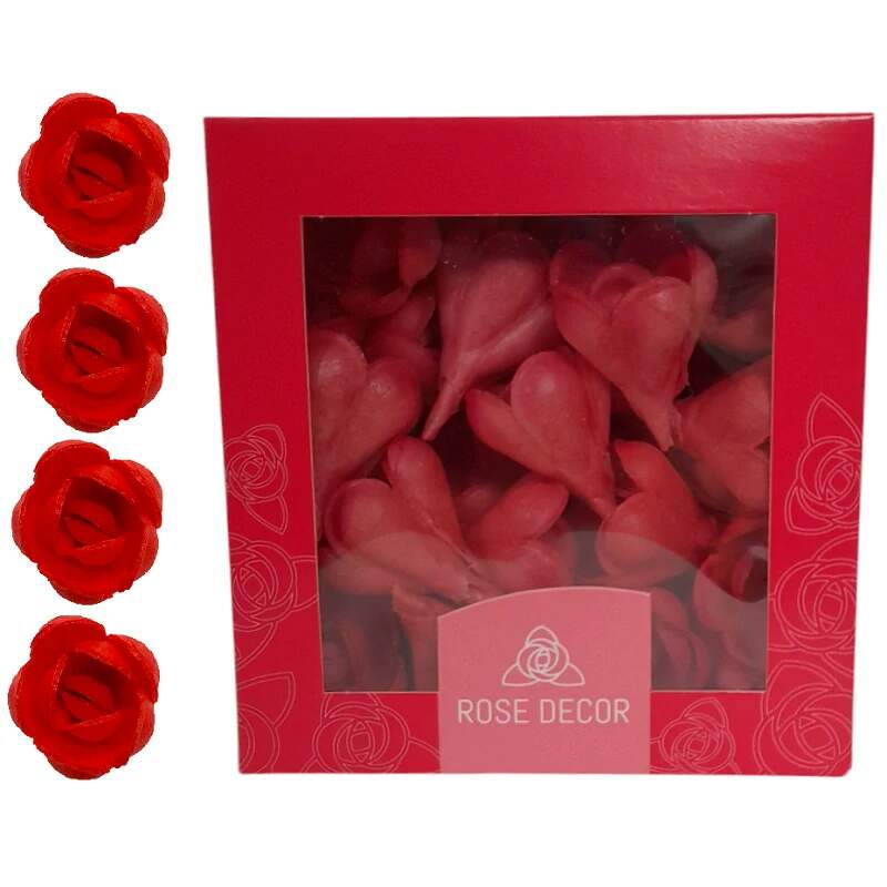 Balení obsahuje 60 ks. Tzv. jedlý papír. Rozměr květu je 2,5 cm. Vhodná na zdobení dortů, rolád, dezertů apod. Složení: škrob, ředkvičkovo-rybízovo-jablečný koncentrát, zahušťovací látka: E466, aroma, barvivo: E122, E172. Barvivo E122 může mít negativní vliv na činnost a pozornost dětí. Výživové hodnoty (ve 100g výrobku): Energetická hodnota: energie 1439 kJ/ 341 kcal; tuky 0,5 g (z toho nasycené mastné kyseliny 0 g); sacharidy 84,5 g (z toho cukry 0,3 g); bílkoviny 0,15 g; sůl 0,06 g