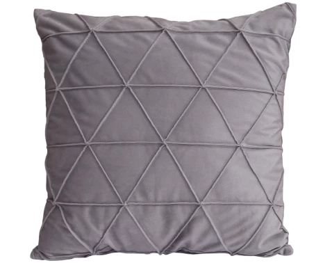 Elegantní stříbrný polštář 45×45 cm s plastickým geometrickým vzorem stylově oživí pohovku, křeslo i postel a dodá interiéru moderní nádech.