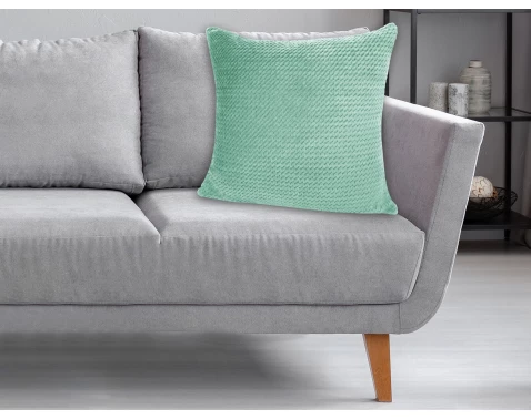Elegantní dekorační polštář 60×60 cm v mátové zelené barvě s jemným flanelovým povrchem je příjemný na dotek a hodí se do moderních i klasických interiérů.