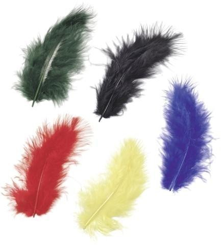 Dekorativní peříčka Marabu mix - žlutá, červená, modrá, zelená, černá 15ks /9cm/