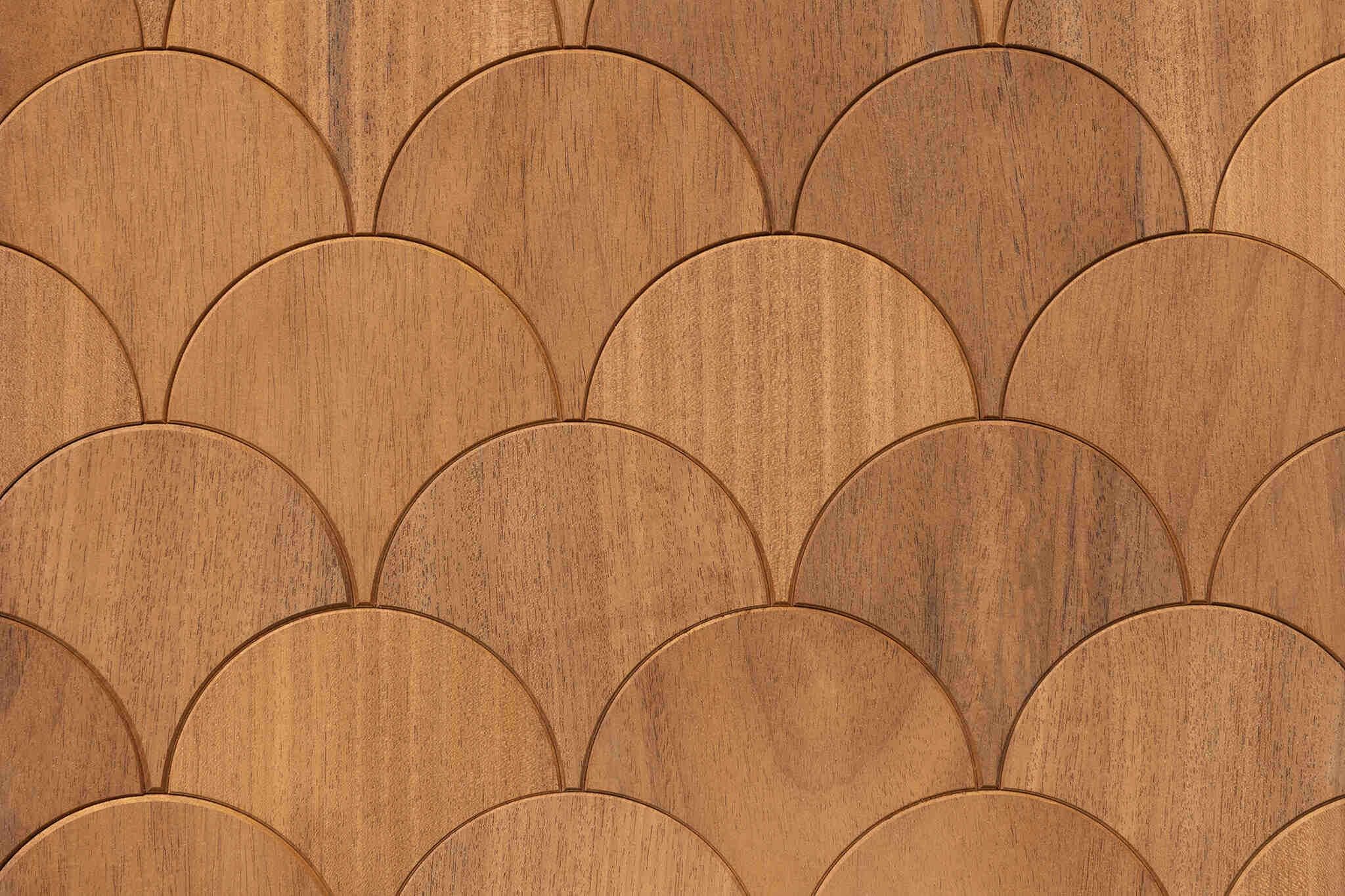 Dekorativní saunový obklad FISH SCALE, abachi thermowood CEMW65L
