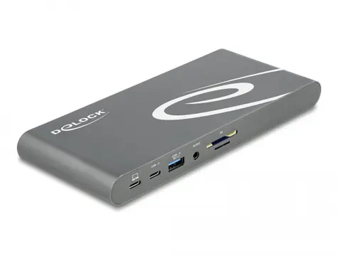Delock Dokovací stanice USB Type-C DP 1.4 šedá / trojí displej 4K - HDMI/DisplayPort/USB/LAN/SD/PD 3.0