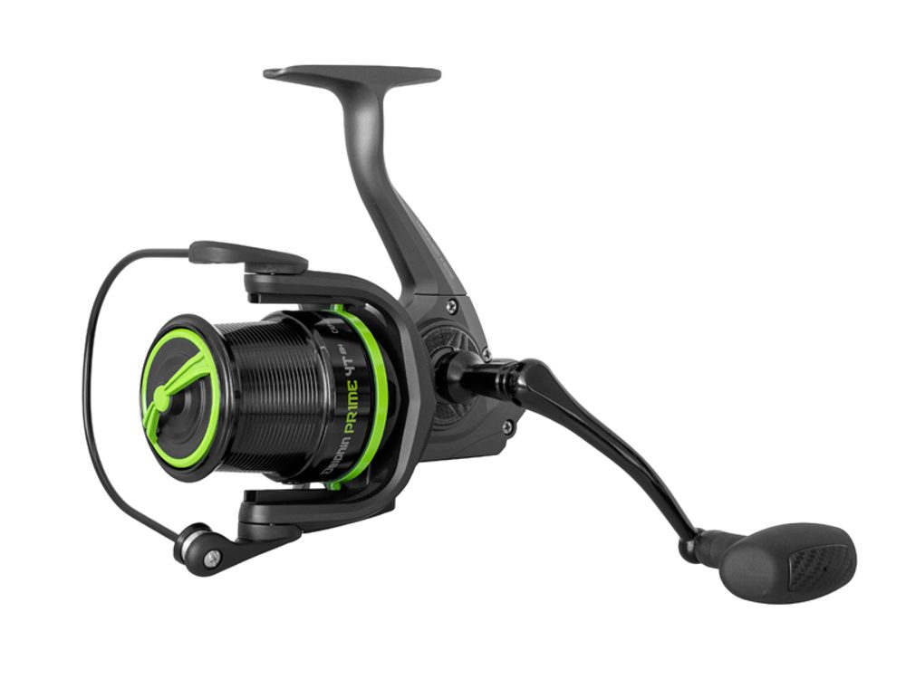Pokud se chystáte na feederový lov na velké vodní plochy s vysokým rybářským tlakem, kdy o úspěchu rozhoduje přesnost a délka vašeho hodu, naviják Delphin PR1ME by rozhodně neměl chybět ve vaší výbavě. Pokud se chystáte na feederový lov na velké vodní plochy s vysokým rybářským tlakem, kdy o úspěchu rozhoduje přesnost a délka vašeho hodu, naviják Delphin PR1ME by rozhodně neměl chybět ve vaší výbavě. Je vybaven vysokou kónickou cívkou s odhozovou hranou, která výrazně přispívá k délce vašeho hodu. Mělká kovová cívka je navržena tak, aby pojala dostatečné množství vlasce. Tělo i rotor vyrobené z karbonu zajišťují nízkou hmotnost navijáku, a to i přes jeho větší rozměry. Pod cívkou se nachází ochrana, která zabraňuje nechtěnému zapadávání vlasce během navíjení. Kombinace převodového poměru 4.7:1 a pomalé oscilace cívky zajišťuje přesné a rovnoměrné ukládání vlasce po celé její délce, což je klíčové, pokud se již rozhodnete nahazovat na maximální vzdálenosti. O bezproblémový a tichý chod se stará sedm kvalitních kuličkových ložisek. Naviják je zároveň vybaven středně rychlou přední brzdou, která umožňuje přesné dávkování brzdné síly v závislosti na podmínkách při zdolávání. Kovová klika je zakončena robustním pogumovaným madlem, které umožní komfortní zdolávání i větších ryb. Zeleno-černé barevné provedení navijáku Delphin PR1ME dokonale zapadne k ostatním produktům z feederové série REAXE.
