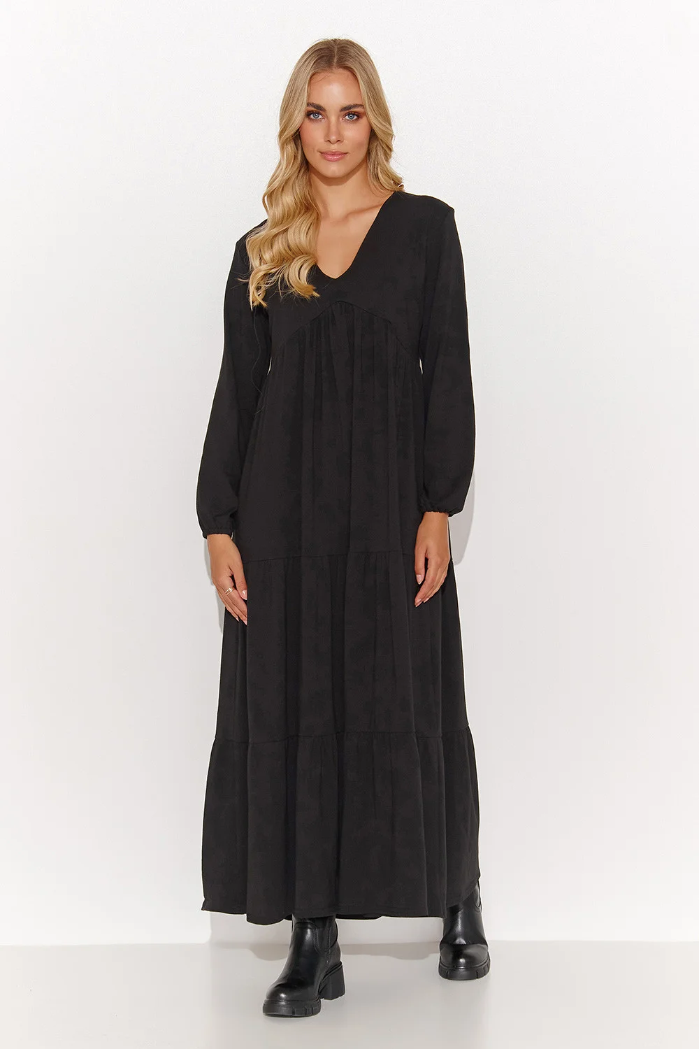 Dlouhé a ležérní šaty jsou ideální volbou pro ženy, které ocení volný, ale stylový střih pro každodenní nošení. Srdíčkový výstřih dodává šatům jemnost a zdůrazňuje klíční kosti, zatímco mírně nabírané rukávy zakončené žebrovaným lemem jim dodávají jedinečný charakter. Segmentové šití dodává šatům zajímavý vzhled. Ozdobné pozlátko je navíc výrazným detailem, který podtrhuje originální design šatů. Dostupnost různých barev: černé, khaki a moka, vám umožní sladit šaty s vaším stylem a preferencemi. Noste je se sportovními teniskami nebo elegantními botami a vytvořte si tak vzhled ve svém stylu. Ať už je budete nosit jakkoli, šaty vám zajistí pohodlí a dodají ležérní nádech. Střih oversize poskytuje dostatek prostoru pro módní experimentování. Bavlna 95 % Elastan 5 % Velikost DélkaObvod beder Obvod prsou Obvod v pase 36126 cm128 cm76 cm108 cm38128 cm136 cm80 cm112 cm40130 cm144 cm84 cm116 cm42132 cm152 cm88 cm120 cm