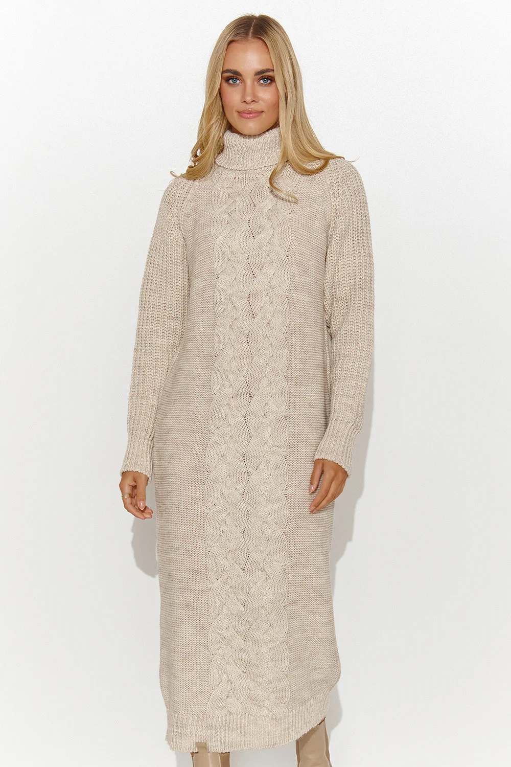 Tyto svetrové šaty ke kolenům jsou kombinací pohodlí a noblesy v jednom. Dlouhé ležérní rukávy a rolák poskytují příjemné teplo, ideální pro chladnější dny. Prodloužený střih za kolena dodává šatům eleganci a zároveň umožňuje jejich neformální nošení pro běžné i pracovní nošení. Výrazná kostkovaná vazba umístěná uprostřed předního dílu dodává šatům jedinečný nádech a podtrhuje jejich jedinečný design. Hladká zadní část šatů naopak zajišťuje zachování rovnováhy. Šaty jsou k dispozici v okouzlujících barvách cappuccino, béžové, krémové, černé a čokoládové. V kombinaci s kozačkami vytvoříte trendy a pohodlný vzhled na podzim a zimu. Můžete je také nosit s teniskami na ležérnější výlety. Díky své univerzálnosti je ideální volbou pro aktivní ženy, které ocení módní a pohodlný vzhled. Akryl 85 % Polyamid 15 % Velikost DélkaObvod prsou Obvod v pase universal114 cm100 cm96 cm