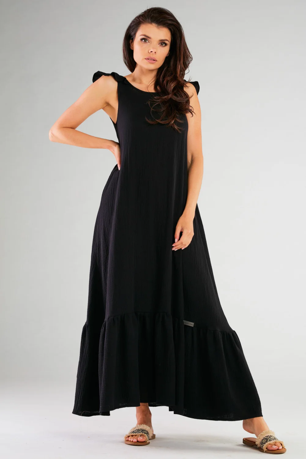 Dlouhé šaty vytvořené pro milovnice romantických a zároveň pohodlných stylizací. Vzor se rozšiřuje směrem dolů, skvěle zakrývá drobné nedokonalosti těla. Navrženo a ušito v Polsku. Bavlna 98 % Lycra 2 % Velikost DélkaObvod beder Obvod prsou Obvod v pase L/XL142 cm136 cm96 cm116 cmS/M141 cm130 cm90 cm110 cm
