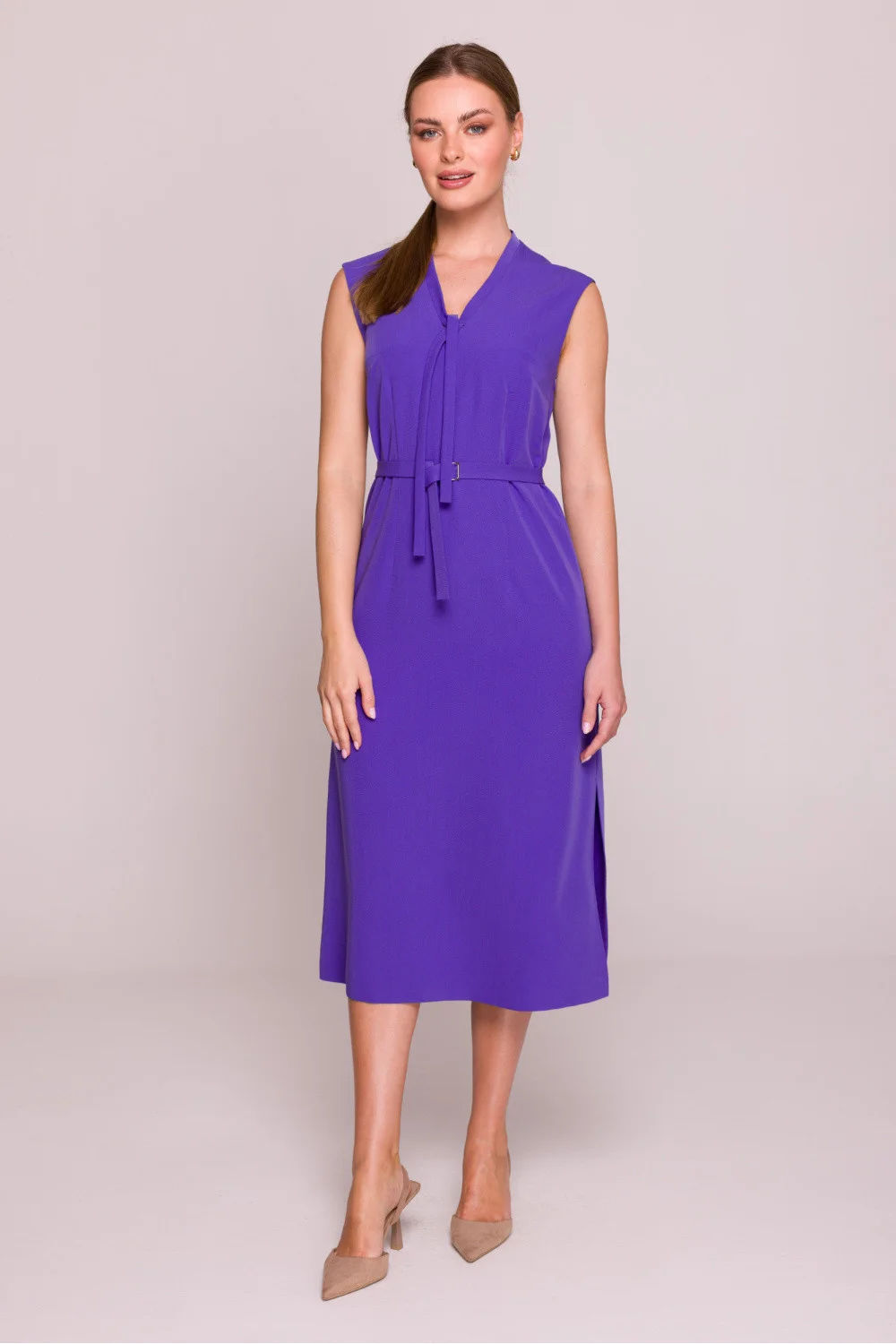 Objevte eleganci a pohodlí v jednom díle díky této jedinečné midi šaty. Navržená a ušitá v Polsku, kombinuje klasický styl s moderními detaily, skvěle odpovídající potřebám současné ženy. Šaty jsou vyrobeny z hladké, lehce elastické látky s saténovým zpracováním, která se krásně přizpůsobuje postavě, poskytující pohodlí při nošení. Její jednoduchý střih s lehce zdůrazněnou talií a tvar lehkého trapézu zaručují elegantní vzhled a volnost pohybu. Midi délka sahající za kolena jí dodává univerzální charakter. Výstřih ve tvaru písmene V s uvázáním dole přidává šatům jemnou smyslnost a umožňuje individuální přizpůsobení. Bez rukávů je ideální volbou na teplejší dny. Praktické rozparky na bocích nejen usnadňují pohyb, ale také přidávají kreaci špetku pikantnosti. V pasu je látkový pás s elegantní sponou, který dokonale zdůrazňuje postavu. Šaty se zapínají na skrytý zip umístěný po straně, což zajišťuje snadné oblékání a neviditelné zakončení. Bez podšívky jsou lehké a prodyšné. Rozhodnete-li se pro tento model, podporujete polské řemeslo a kvalitu zpracování. Elastan 5 % Polyester 65 % Viskóza 30 % Velikost DélkaObvod beder Obvod prsou Obvod v pase L120 cm110 cm102 cm94 cmM119 cm105 cm97 cm89 cmS118 cm100 cm92 cm84 cmXL121 cm115 cm107 cm99 cmXXL122 cm120 cm112 cm104 cm