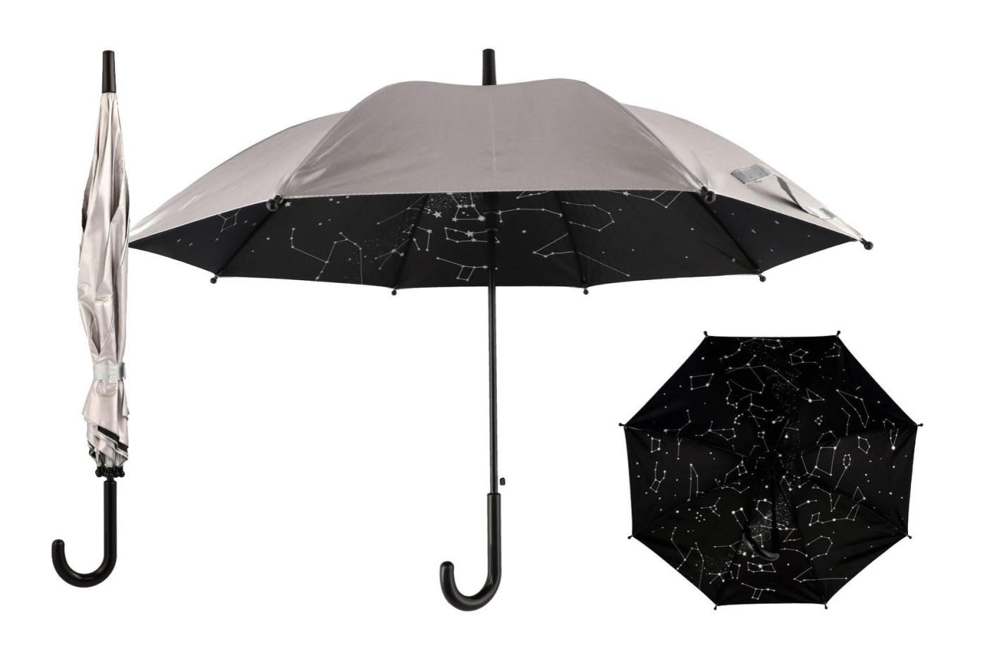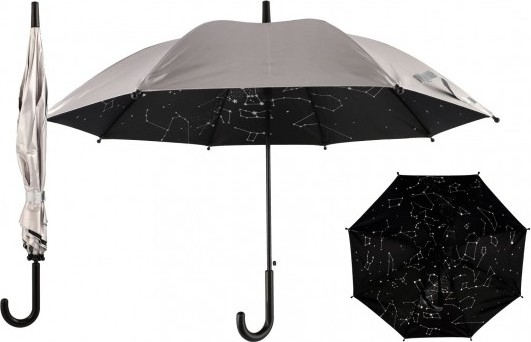 Když do deště, tak s tímto stylovým deštníkem! Krásný vystřelovací deštník. Zaujme svým designem v kombinaci stříberné barvy a vnitřím motivem souhvězdí. Délka ve složeném stavu: 70 cm Průměr rozleženého deštníku: 90 cm Rozměry výrobku: 9 x 70 x 4 cm Vhodné od 14 let